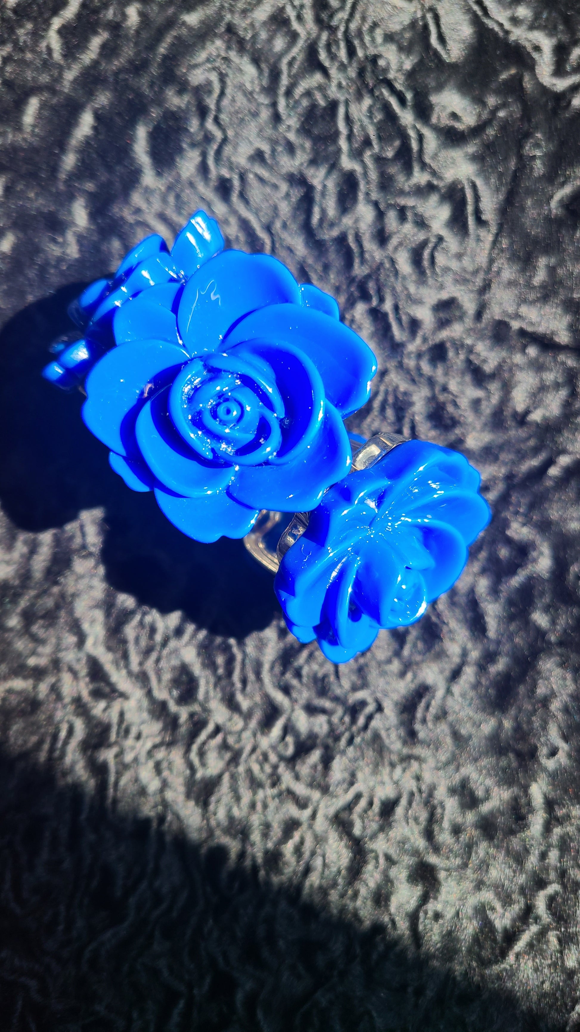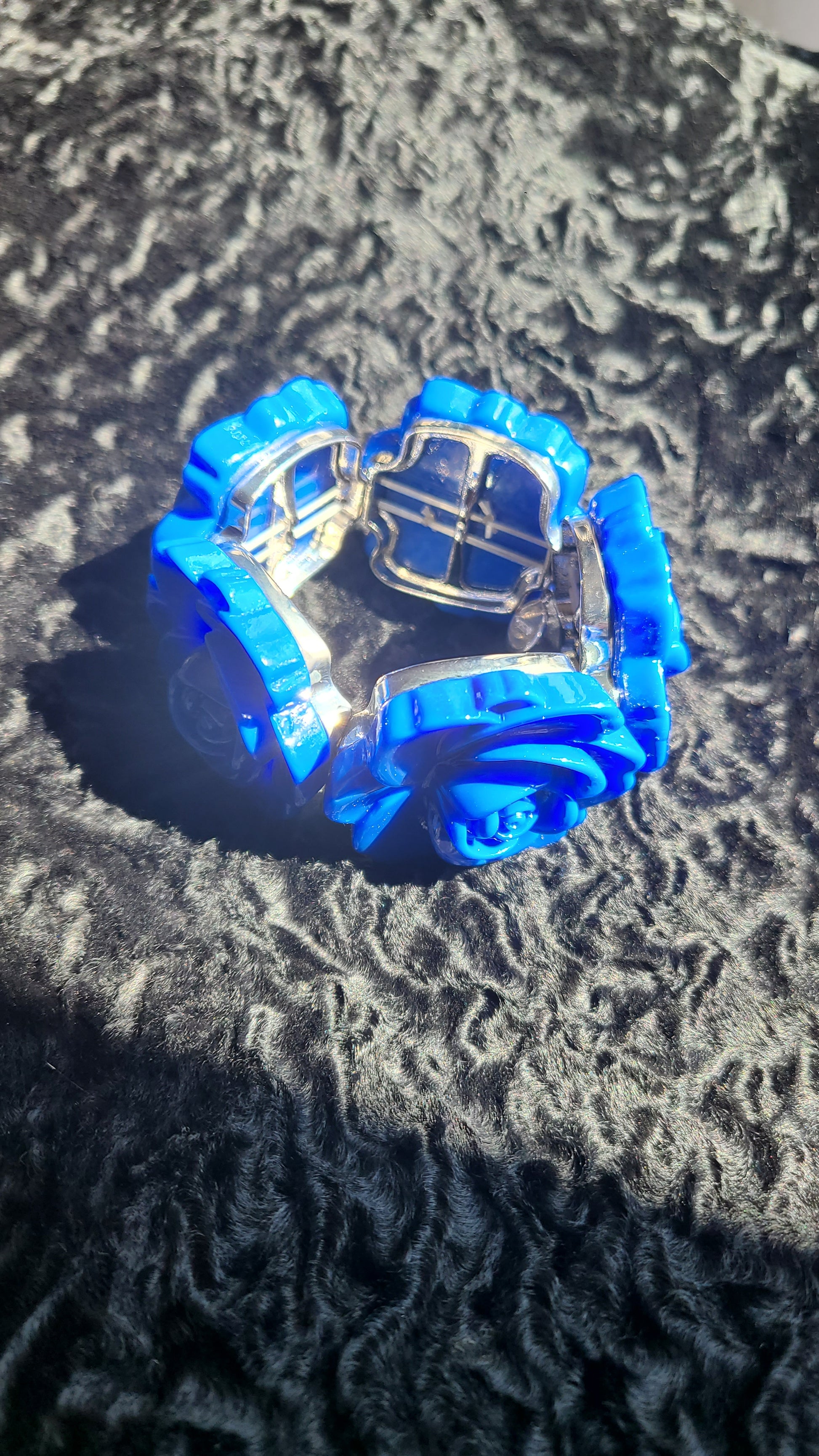 Acrylic Blue Flower Stretch Bracelet - New Without Tags