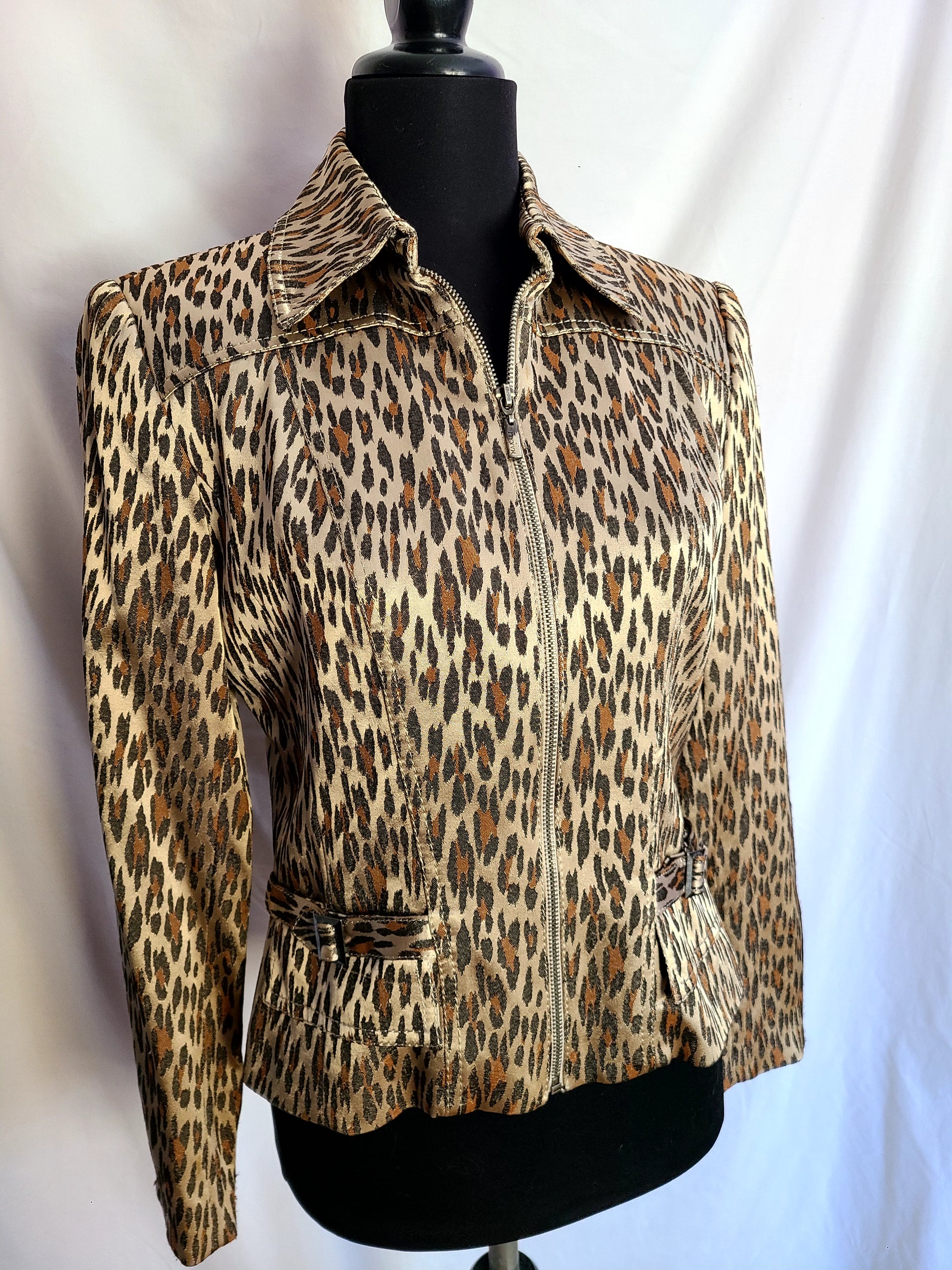 Sweet cropped beauty in a cheetah print with a silky sheen to it. Zipper Closure and a body con fitted style