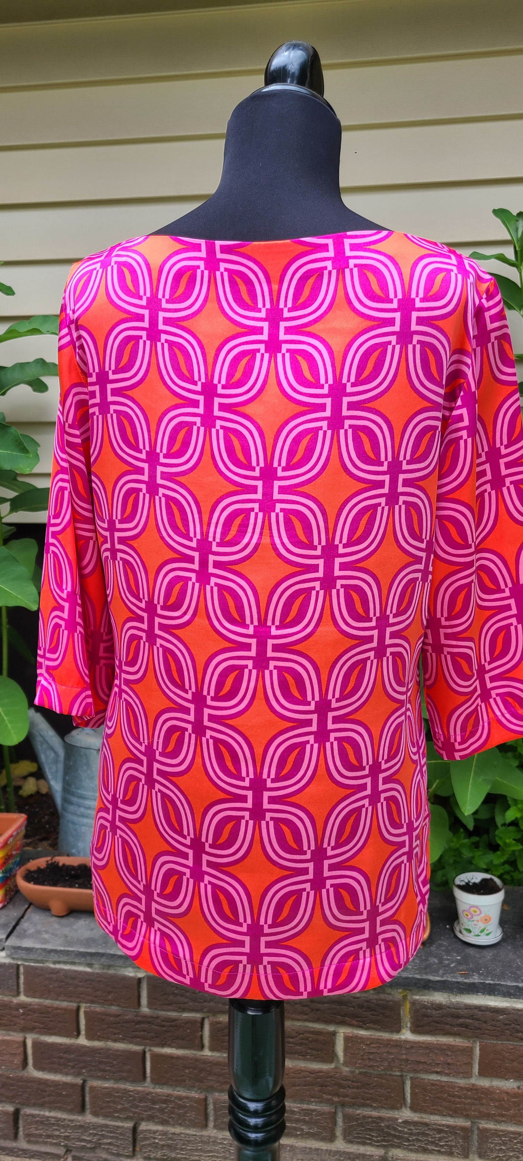 Coldwater Creek Brand Mod Print Pink and Orange Blouse | Size 8