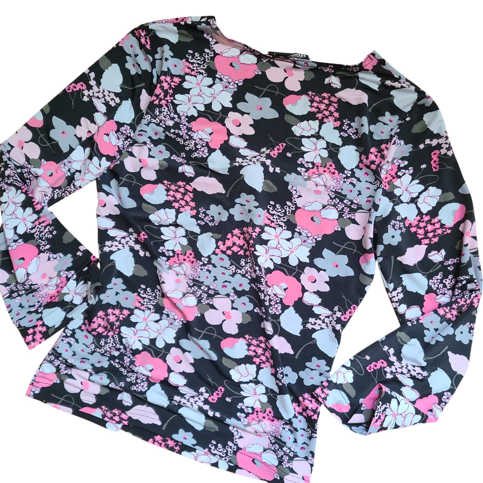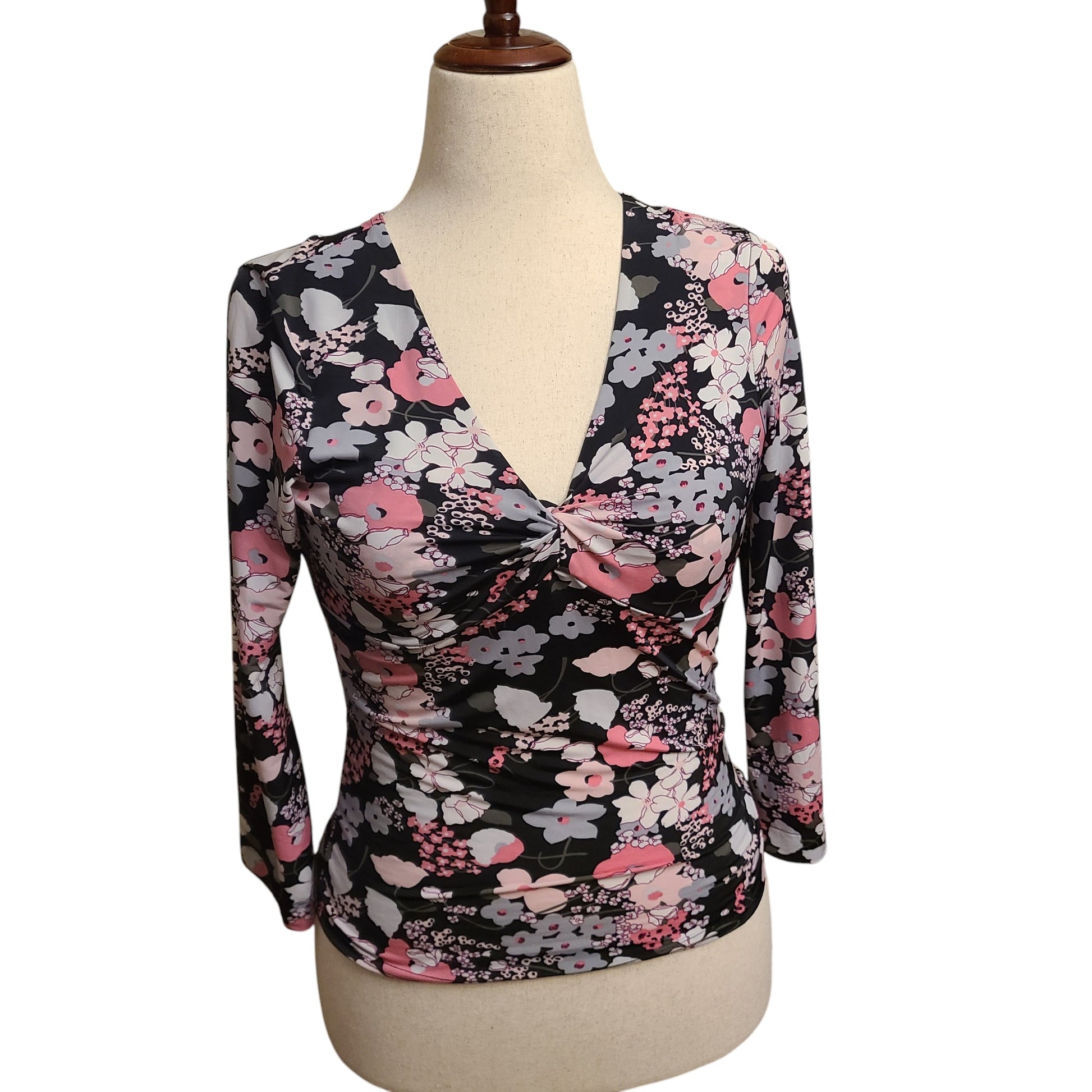 Fashion Bug 90's Pink on Black Floral Top | Size Small
