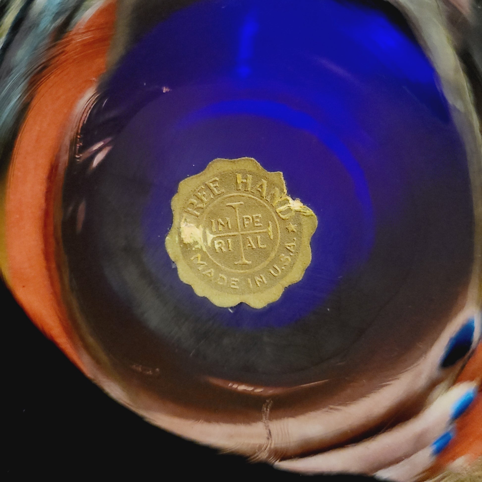 The Free Hand line was Imperial’s bid at entering the high-end Art Glass market, with forms and decorations created entirely by hand by highly talented glass artists especially invited to work at the factory in Bellaire.